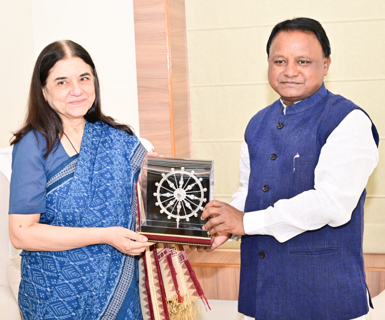 ମୁଖ୍ୟମନ୍ତ୍ରୀ ଶ୍ରୀ ମୋହନ ଚରଣ ମାଝୀଙ୍କୁ ତାଙ୍କ ସରକାରୀ ବାସଭବନରେ ସୌଜନ୍ୟମୂଳକ ସାକ୍ଷାତ କରୁଛନ୍ତି ପୂର୍ବତନ କେନ୍ଦ୍ରମନ୍ତ୍ରୀ ତଥା ବିଶିଷ୍ଟ ପରିବେଶବିତ୍ ଶ୍ରୀମତୀ ମେନକା ଗାନ୍ଧୀ ।